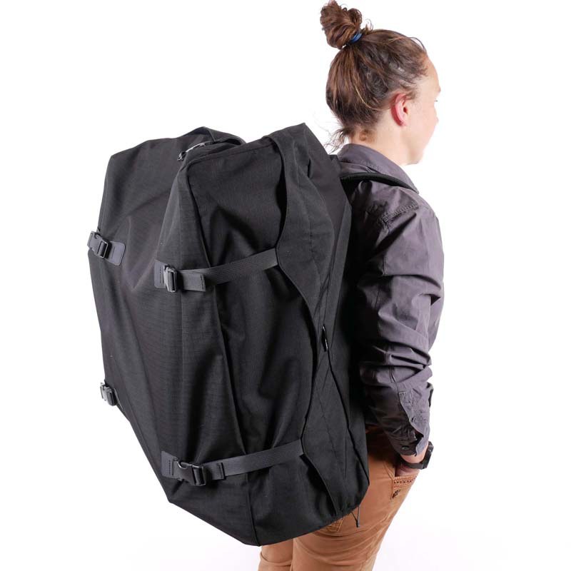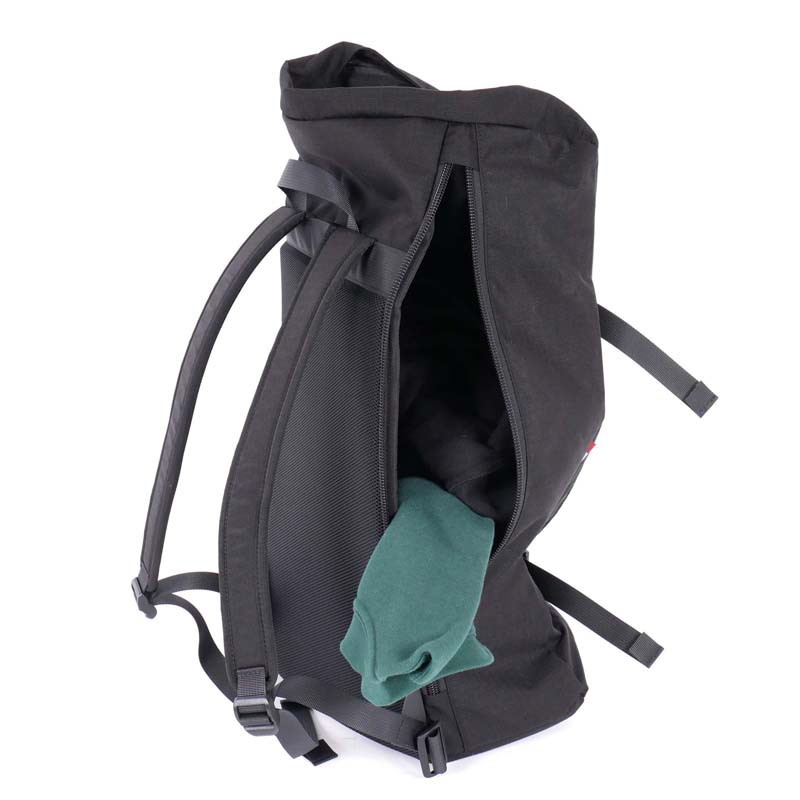 Wenn Sie mit dem Fahrrad fahren, können Sie den Rucksack weiterhin benutzen. In wenigen einfachen und schnellen Schritten können Sie es zu einem praktischen Tagesrucksack verdichten. Von diesem Moment an können Sie den kurzen Reißverschluss auf der Rückseite verwenden, um das Innere des Rucksacks zu erreichen und Kleidung oder Lebensmittel reinzustecken.