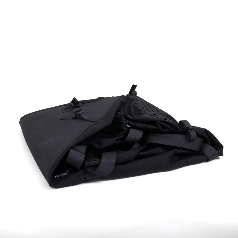 Die Bullitt Bag ist für den Transport von Fracht mit Bullitt Cargo-Fahrrädern, aber auch für Omnium-Fahrräder konzipiert. Sein riesiges Volumen kann fast alles enthalten: Pakete, persönliche Sachen, Lebensmittel oder sogar Möbel! Die Kompressionsriemen ermöglichen es, alles in der Tasche genau festzuziehen. Mit 8 Verbindungspunkten am Fahrradrahmen ist der Bullit immer noch sehr einfach zu handhaben. Das Dyno 420D Nylon und die minimale Anzahl von Nähten verhindern, dass Wasser eindringt. Der Hauptstoff ist Cordura 1000, was die Tasche extrem strapazierfähig macht. Der Boden ist mit einer starken Wabenplatte verstärkt, die schwere Lasten trägt. Das Zipper / Roll Top-System ermöglicht es, das Volumen der Tasche an den Inhalt anzupassen.