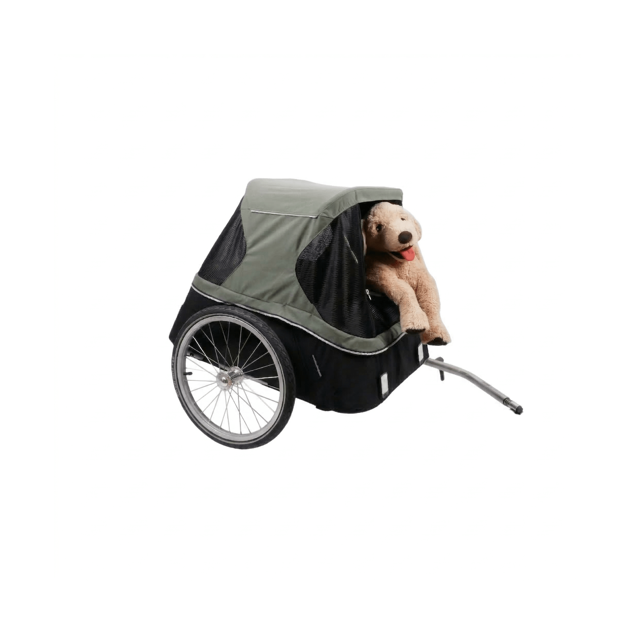 Unser Hundeanhänger kann auch an einem 16-Zoll-Fahrrad befestigt werden, zum Beispiel an einem Brompton-Faltrad. Dafür liefern wir eine kürzere Deichsel und eine Brompton-Kupplung mit. Gib beim Auschecken an, dass du dies wünschst, und wir passen das Paket entsprechend an!