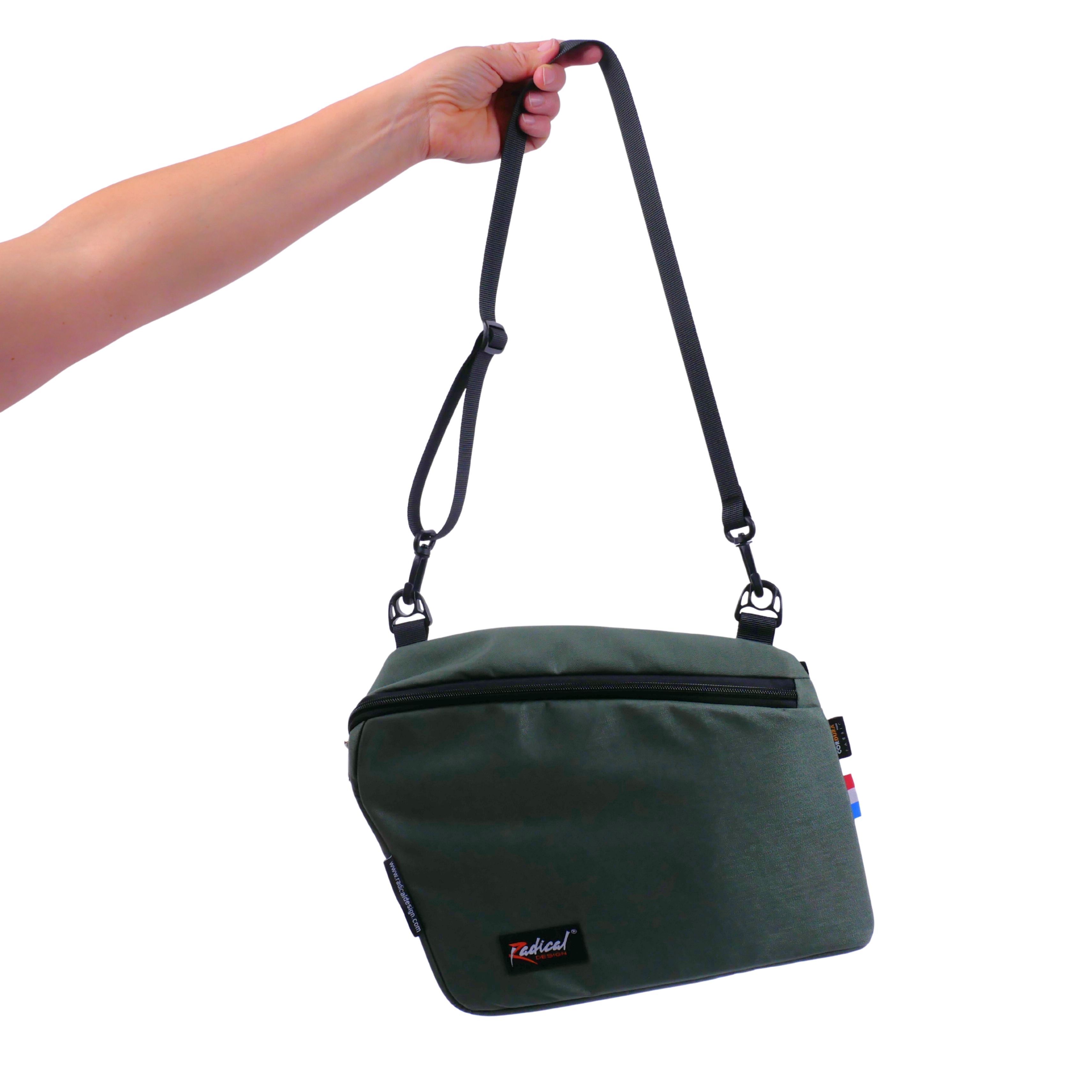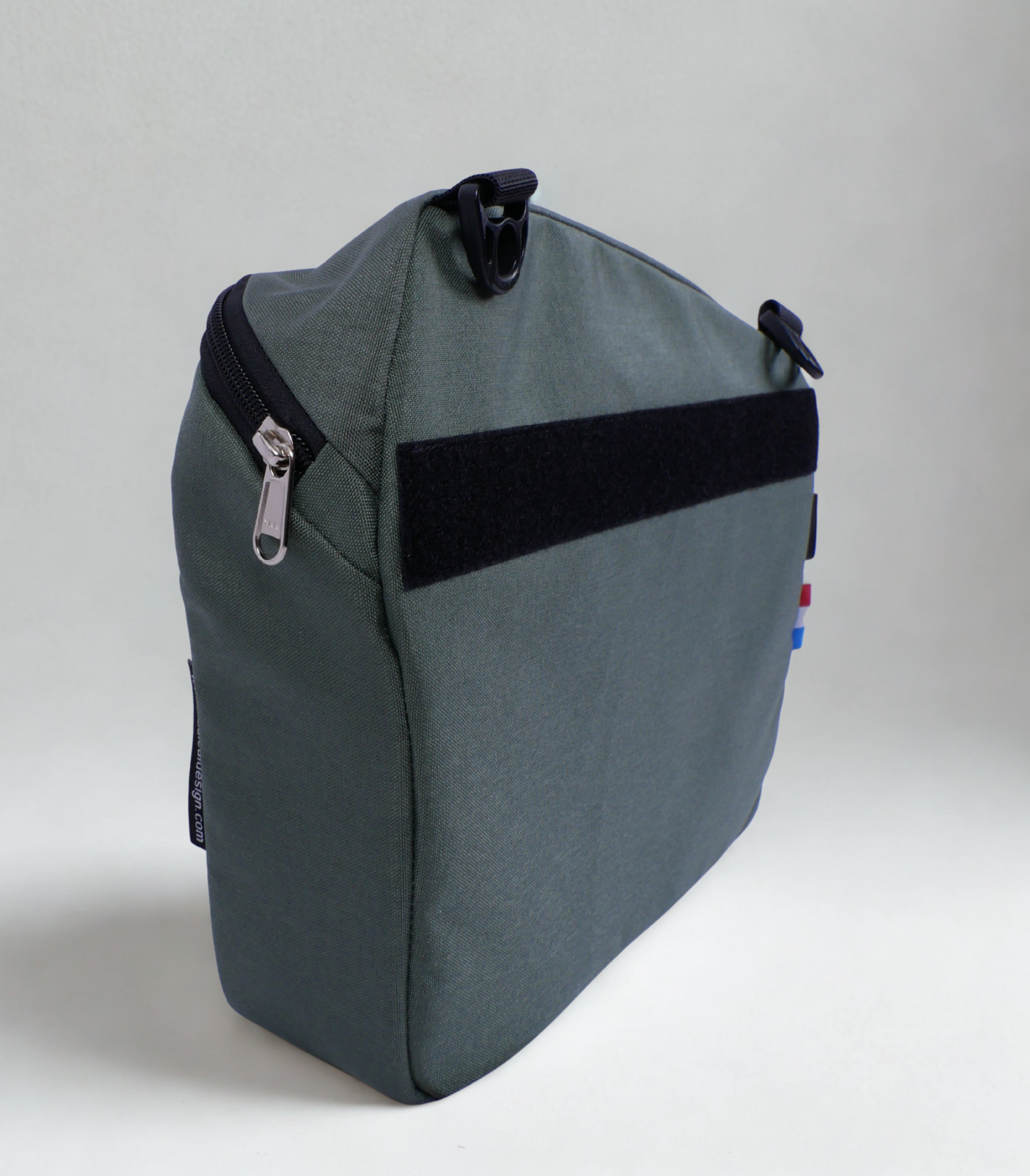 Mit dem mitgelieferten selbstklebenden Klettband lässt sich die Tasche ganz einfach an der Innenseite Ihres Velomobils befestigen. Kompakt, robust und clever gestaltet – genau das, was Sie unterwegs brauchen. Dank des abnehmbaren Schultergurts verwandeln Sie die Tasche im Handumdrehen in eine praktische Handtasche.