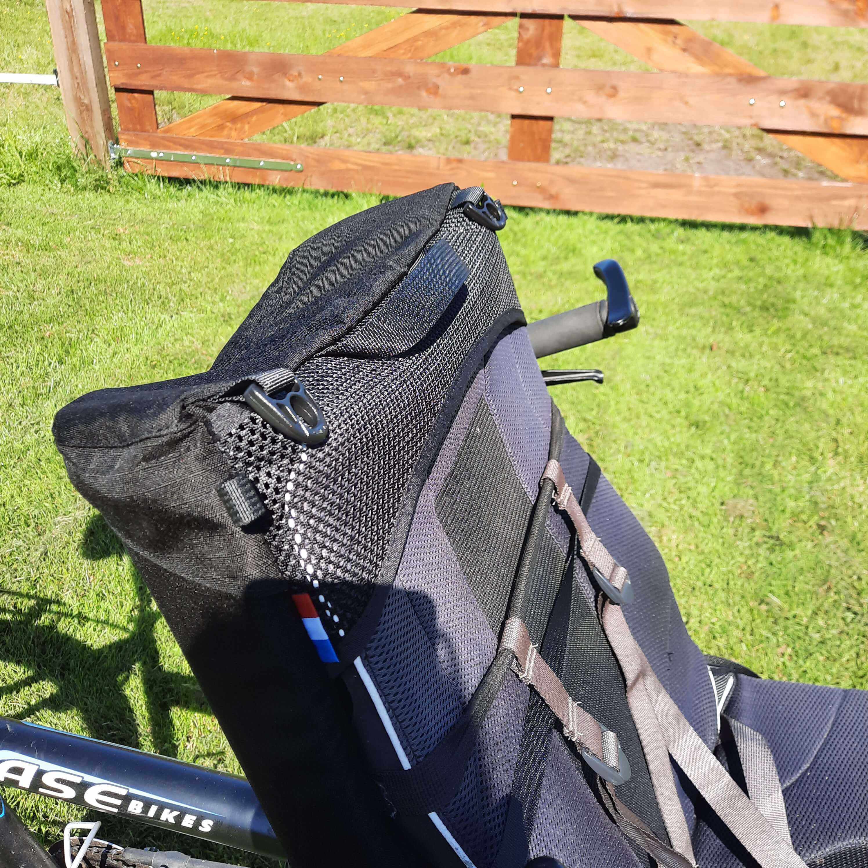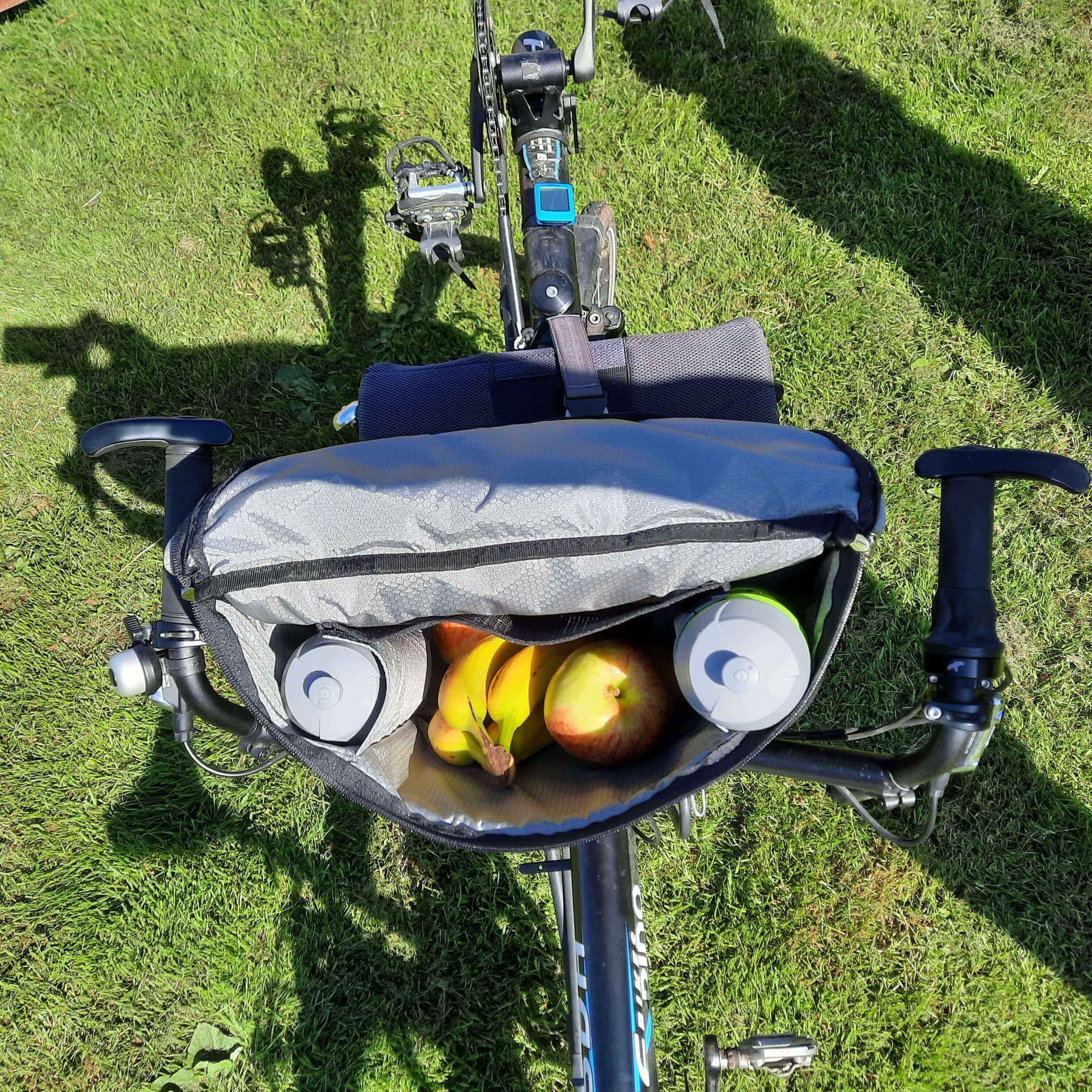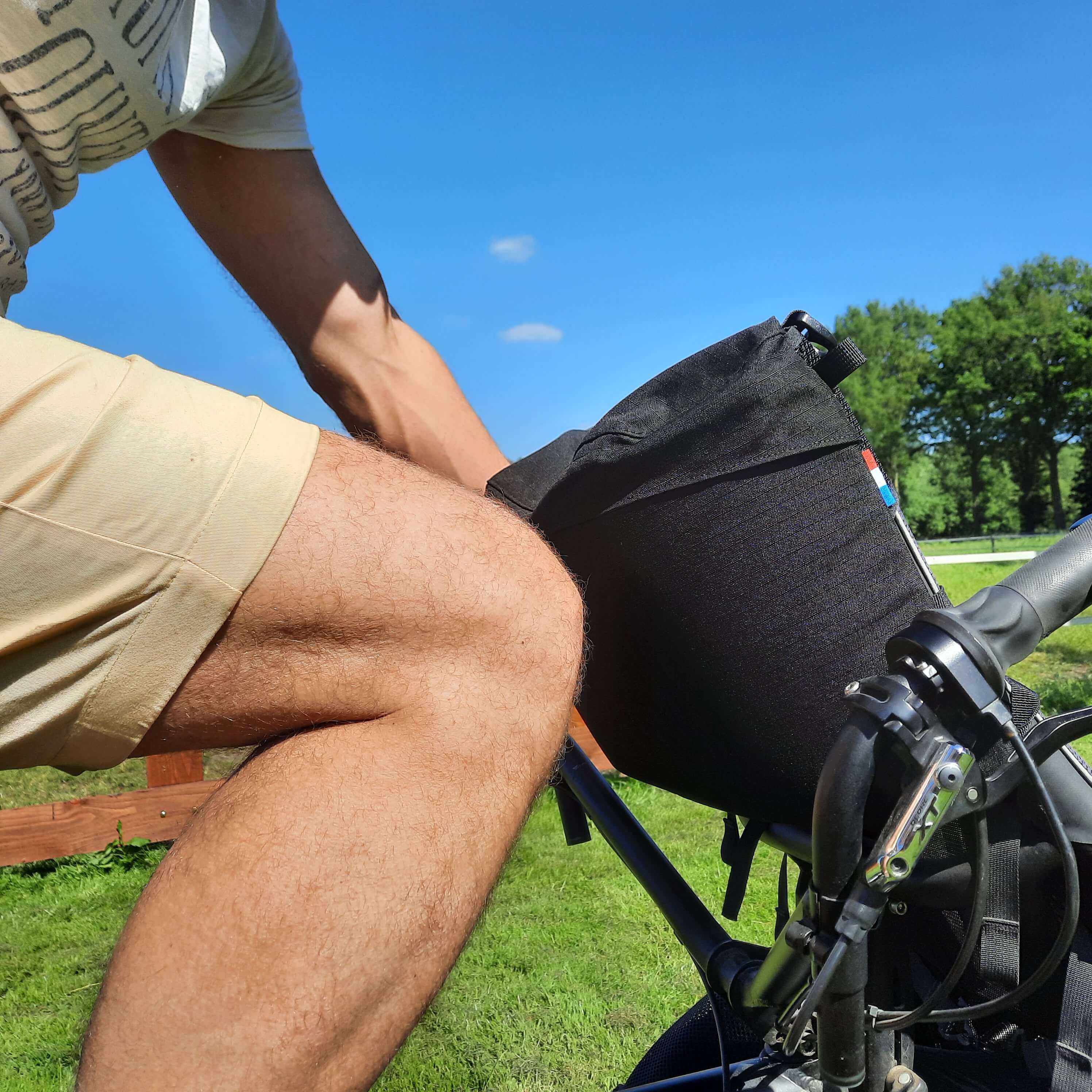 Diese Tasche wurde speziell für Hase Pino Fahrräder entwickelt (allein fur Fahrräder von 2020 und früher). Es handelt sich um eine Tasche, die am Vordersitz befestigt wird und für den hinteren Radfahrer zugänglich ist. Es ist so konzipiert, dass es das Radfahren nicht behindert, die Beine berühren die Tasche nicht.