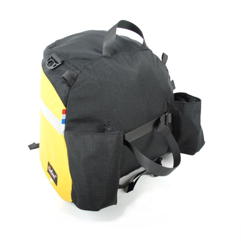 Die Toptasche Large hat ein Volumen von 30 Litern und ist nicht nur mit Schaum verstärkt, sondern hat einen Innenrahmen, um auf schmalen oder kurzen Gepäckträger Schlabbern und Schlackern zu vermeiden. Dadurch wird auch gewährleistet, daß die Rücklichter durch die Tasche nicht abgedeckt werden. Um sie auf Ihrem Liegerad zu befestigen, schieben Sie den vorderen Gurt über dem Sitz, legen Sie die Tasche auf dem Gepäckträger und sichern Sie die unteren Bänder, um den Träger herum.