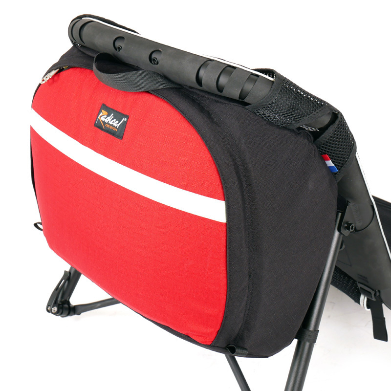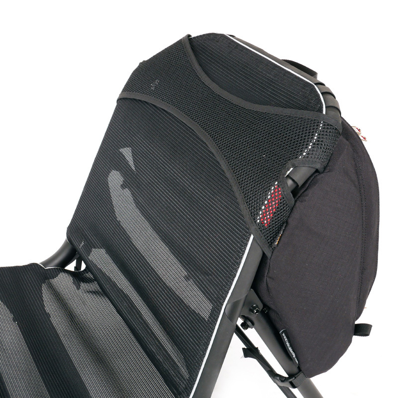 Rückenlehne, wodurch sie ein Einheit mit dem Fahrrad formt.