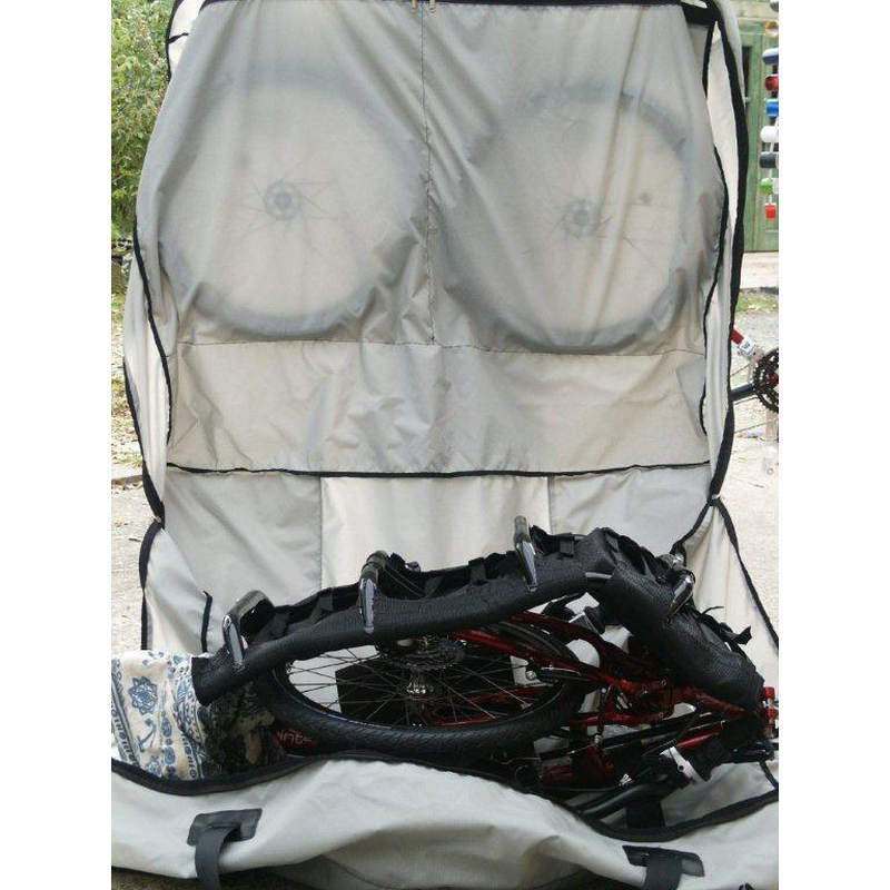 Wenn Sie eine faltbare Trike haben, ist dieses Produkt für Sie. Diese Transporthülle passt als ein kleines Paket zusammengefaltet bequem in Ihre Gepäcktasche, und bietet Platz aller Marken Faltbare Trikes. Haben Sie eine Strecke Rad gefahren und wollen Sie mit öffentlichen Verkehrsmitteln zurück, oder wollen Sie eine schlammige Trike im sauberen Auto transportieren, dann ist die Trike Transporthülle die Antwort. Die mitgelieferten verstellbaren Schultergurt verläuft durch Schlitze in der Tasche und wirt direkt an den Trike befestigt, so dass der Stoff beim Tragen nicht durch das Gewicht des Trike belastet wirt. Mehrere Innentaschen mit Reißverschluss bieten Platz für Räder, Pedale oder andere Teile.