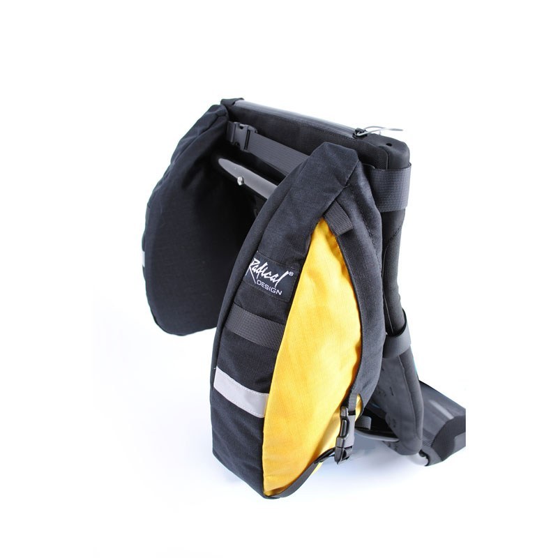 Der Universal Racer ist wie ein Solo Racer, aber für Spannsitze angepasst. Ein Universal Racer besteht aus zwei Taschen, durch Bänder verbunden. Diese Bänder sind verstellbar, um jede an Sitzbreite anzupassen. Zu befestigen, einfach die Bänder über den Sitz stülpen und schon ist er sicher befestigt. Dies funktioniert für Sitze mit und ohne Kopfstütze.