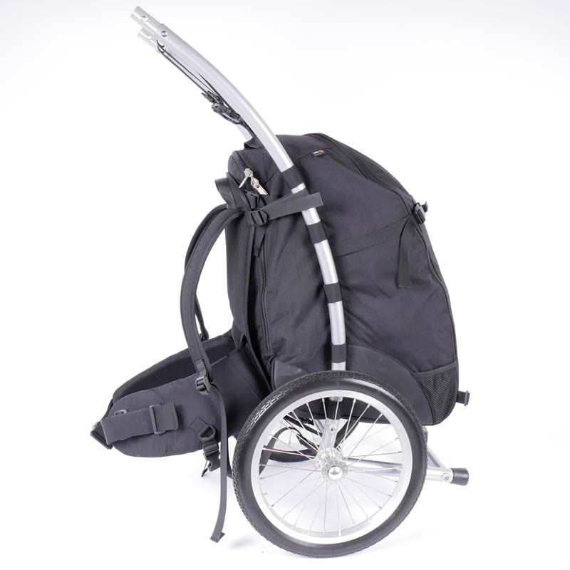 Mit dem Wheelie Backpanel können Sie den Wheelie über mehrere Kilometer auf dem Rücken tragen, viel bequemer als mit den einfachen Schultergurten, die in der Wheelie Traveller-Tasche enthalten sind. Es ist sowohl für Wheelie Traveller als auch für Wheelie Cargo geeignet.